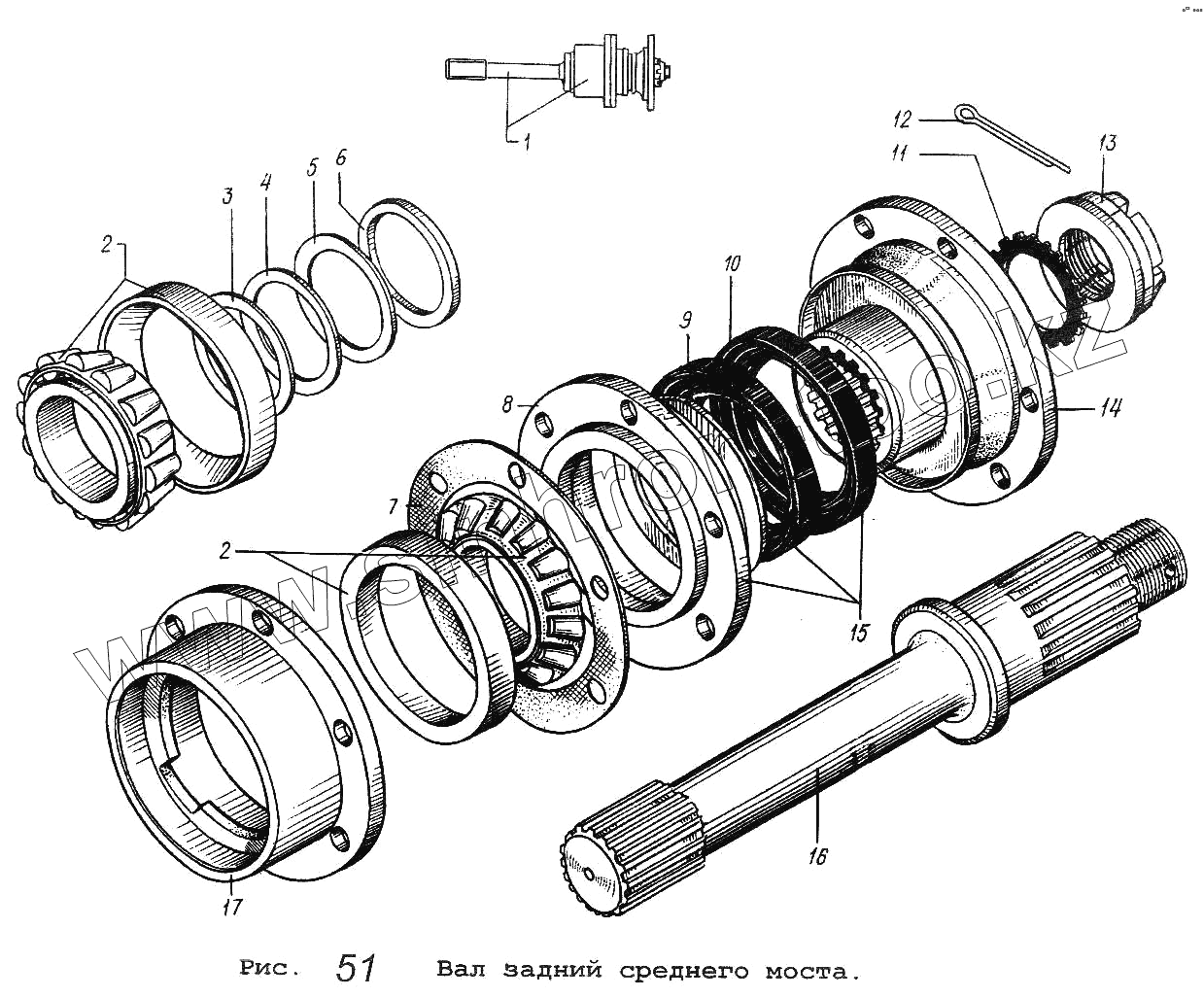 Каталог запасных частей к технике: МАЗ-53371. Вал задний среднего моста