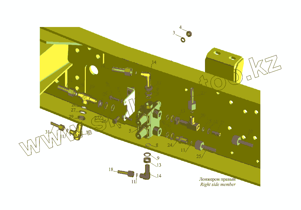 Каталог запасных частей к технике: МАЗ-533731. Крепление клапана четырехконтурного 53371-3515002