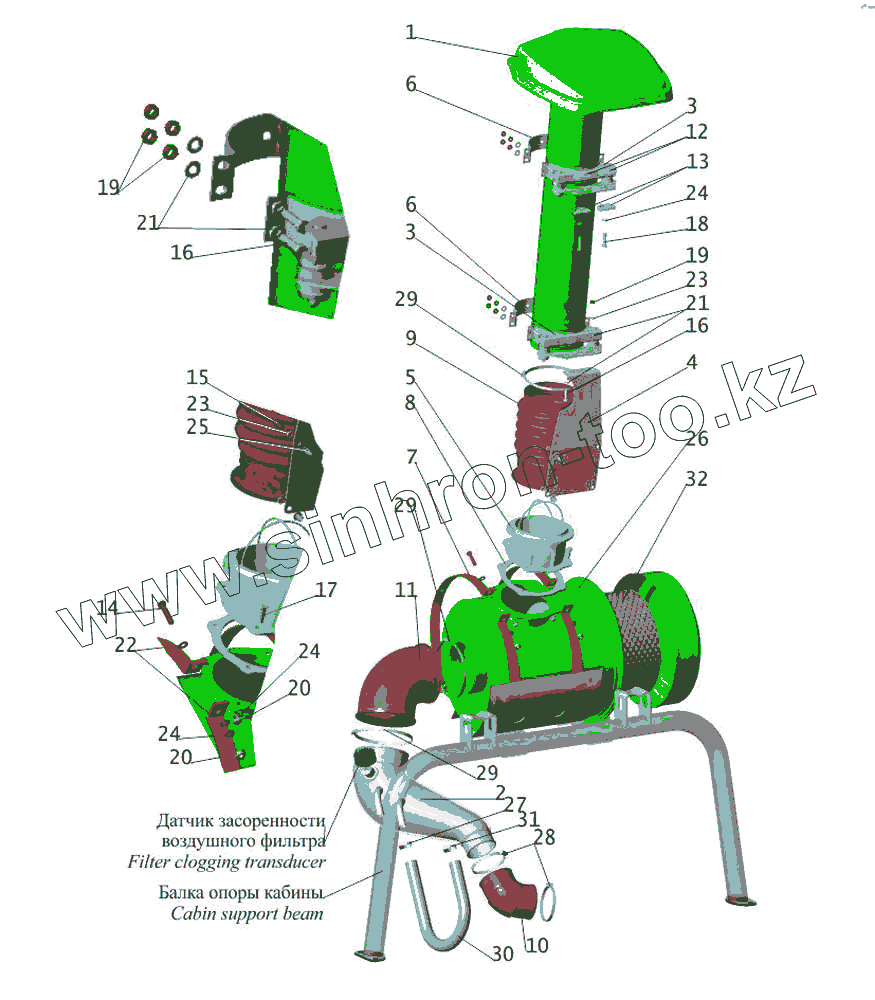Каталог запасных частей к технике: МАЗ-533731. Крепление воздушного фильтра 555132-1109002