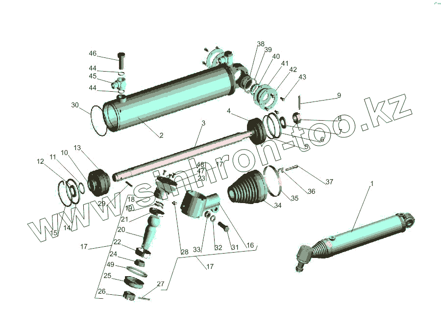 Каталог запасных частей к технике: МАЗ-533731. Силовой цилиндр гидроусилителя рулевого управления 6422-3405004