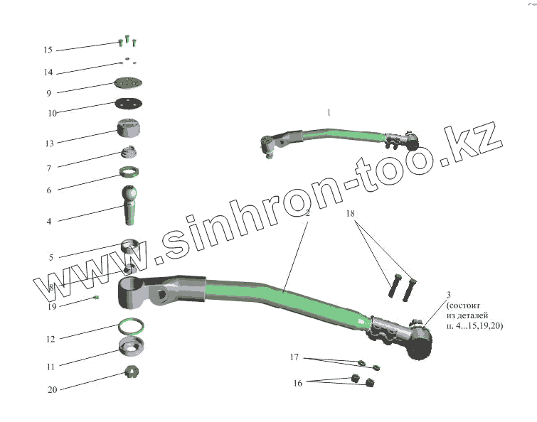 Каталог запасных частей к технике: МАЗ-533731. Tяга продольная 5551-3003010-01