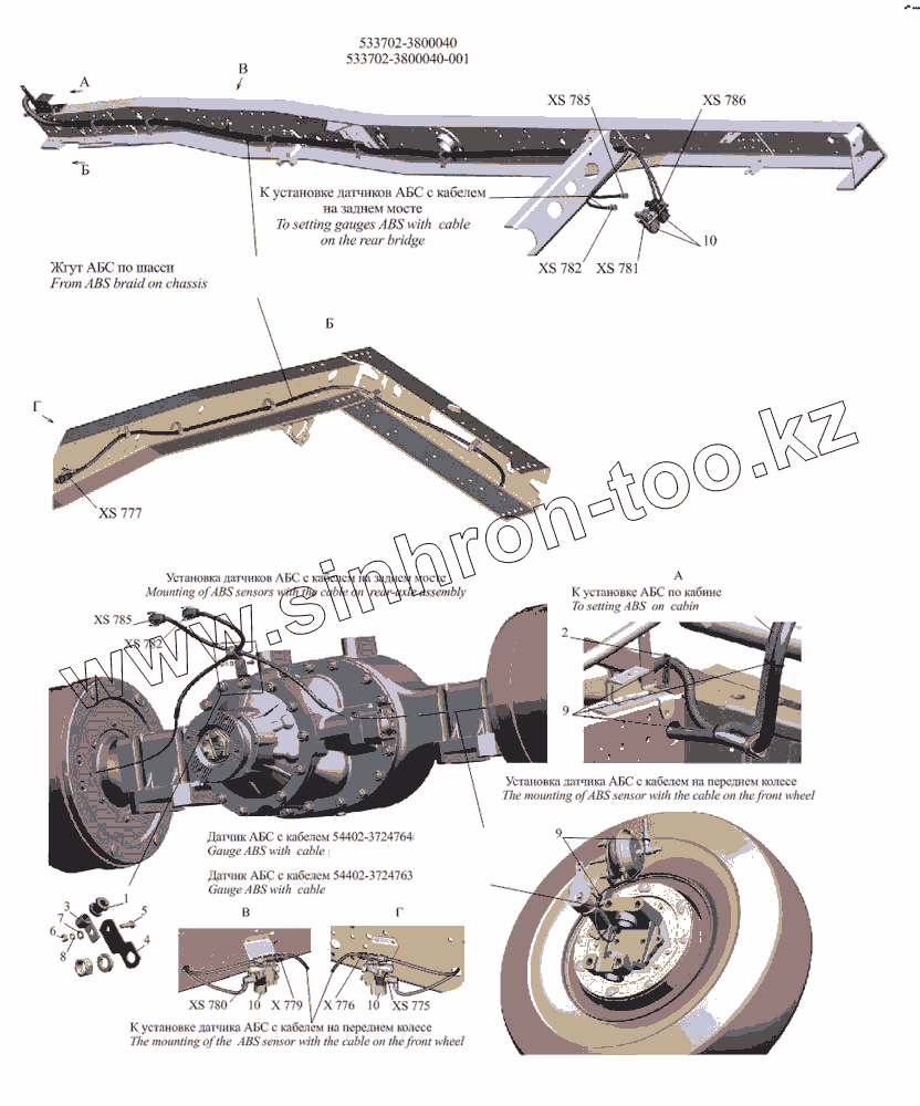 Каталог запасных частей к технике: МАЗ-533731. Установка электрооборудования АБС 533702-3800040