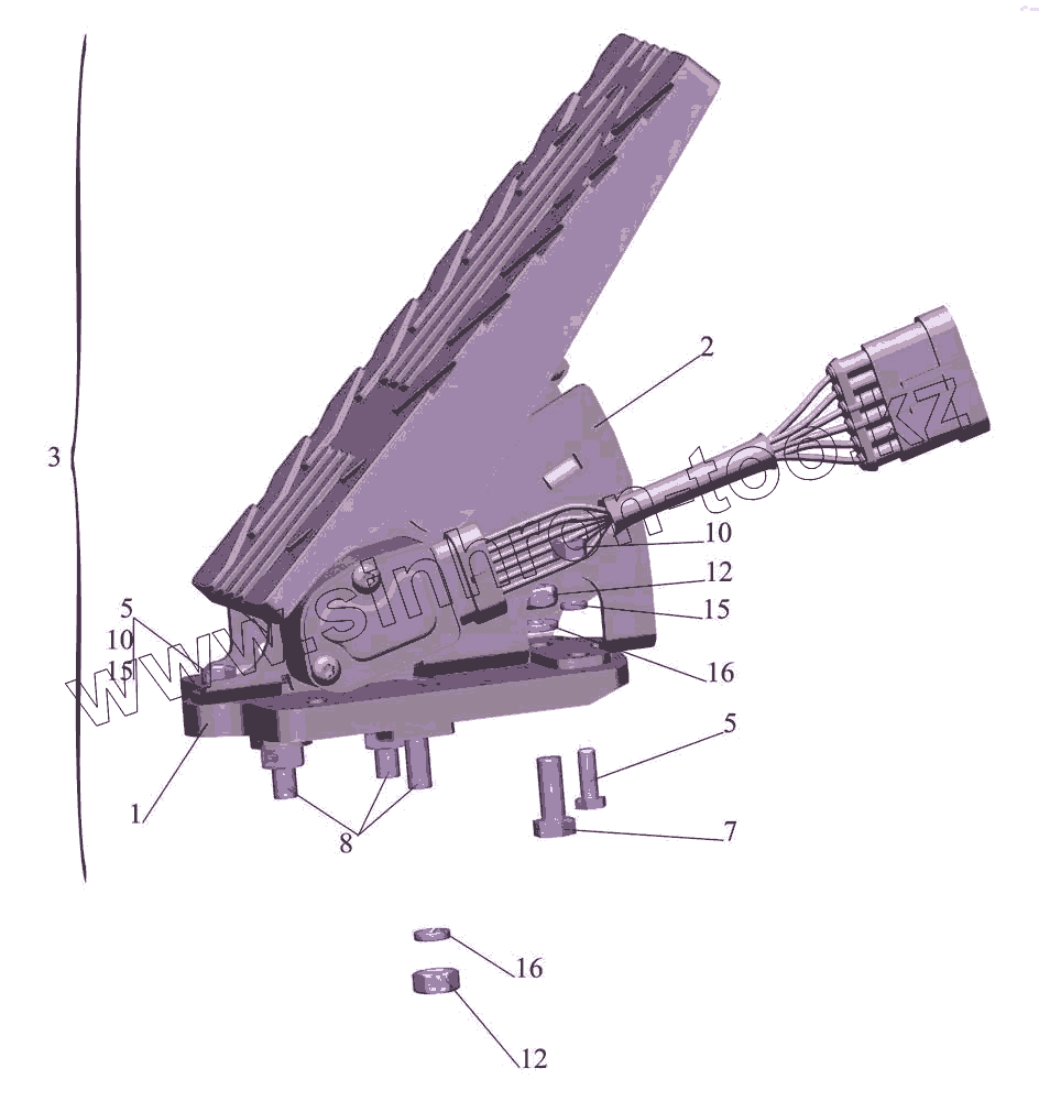 Каталог запасных частей к технике: МАЗ-533731. Установка педали управления двигателем 437143-1108002