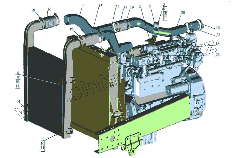 Каталог запасных частей к технике: МАЗ-533731. Установка системы охлаждения наддувочного воздуха 533731-1300040