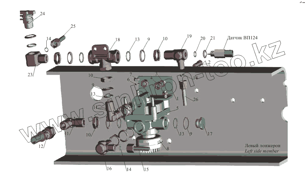 Каталог запасных частей к технике: МАЗ-533731. Установка ускорительного клапана 555102-3518004