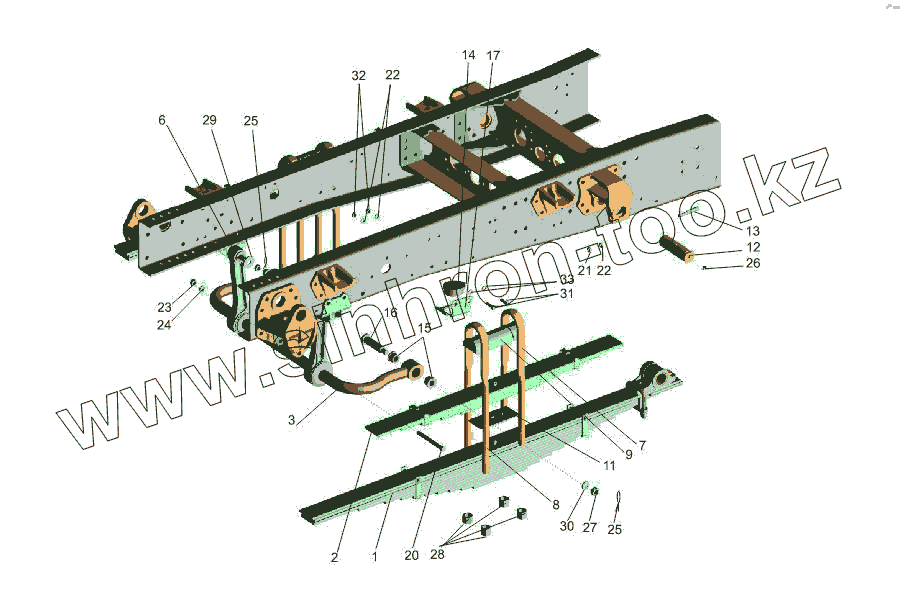 Каталог запасных частей к технике: МАЗ-533731. Установка задней подвески 55514-2900002
