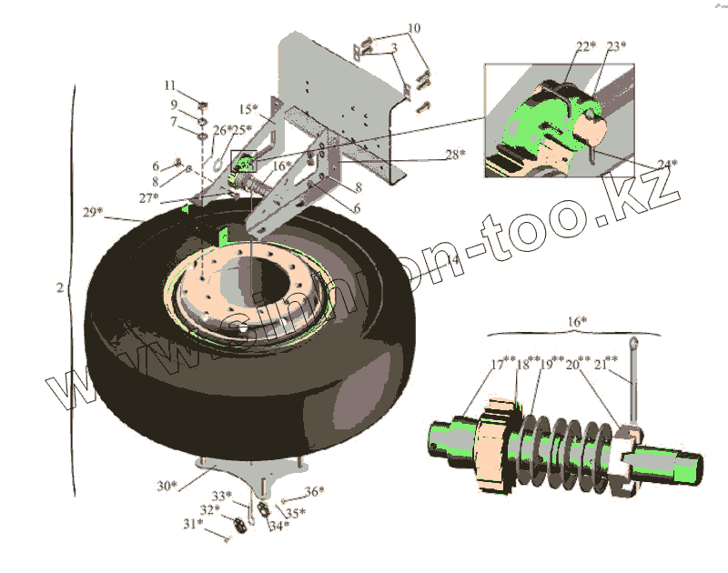 Каталог запасных частей к технике: МАЗ-533731. Установка запасного колеса