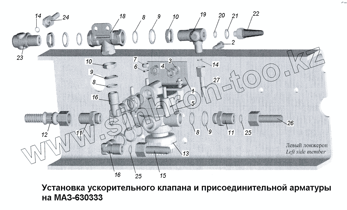 Установка элементов электрооборуд.электрон.систем на МАЗ-630333 ф.Wabco