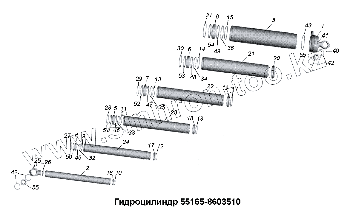Каталог запасных частей к технике: МАЗ-533731. Гидроцилиндр 55165-8603510