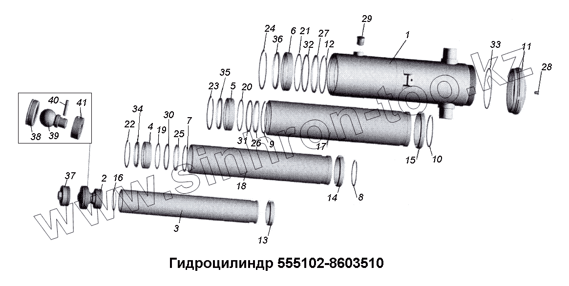 Каталог запасных частей к технике: МАЗ-533731. Гидроцилиндр 555102-8603510