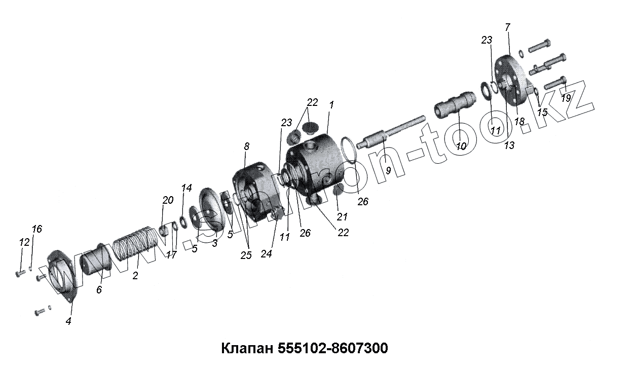 Каталог запасных частей к технике: МАЗ-533731. Клапан 555102-8607300