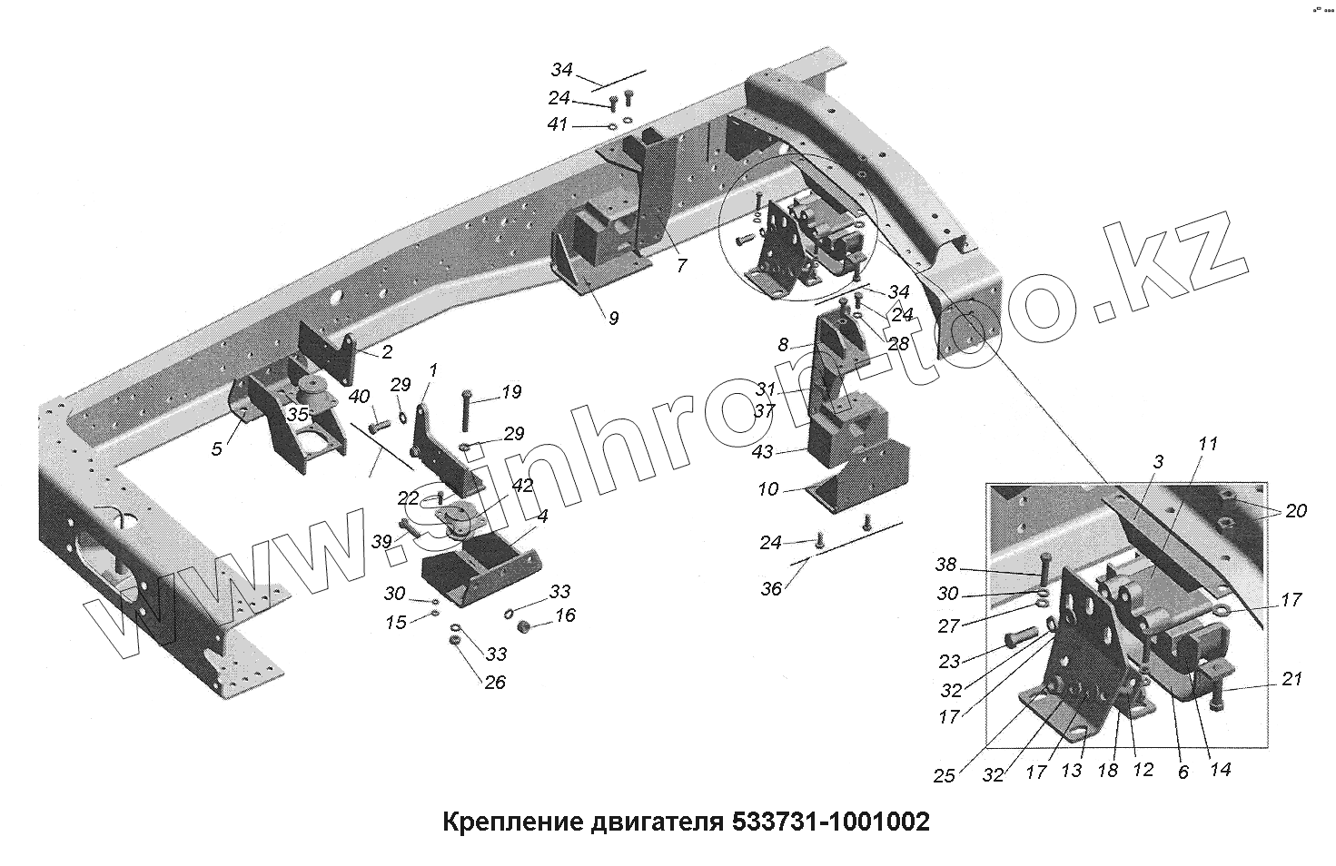 Каталог запасных частей к технике: МАЗ-533731. Крепление двигателя 533731-1001002