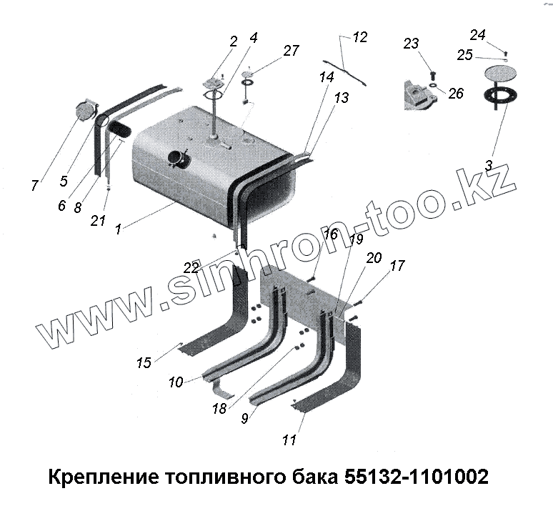 Каталог запасных частей к технике: МАЗ-533731. Крепление топливного бака 555132-1101002