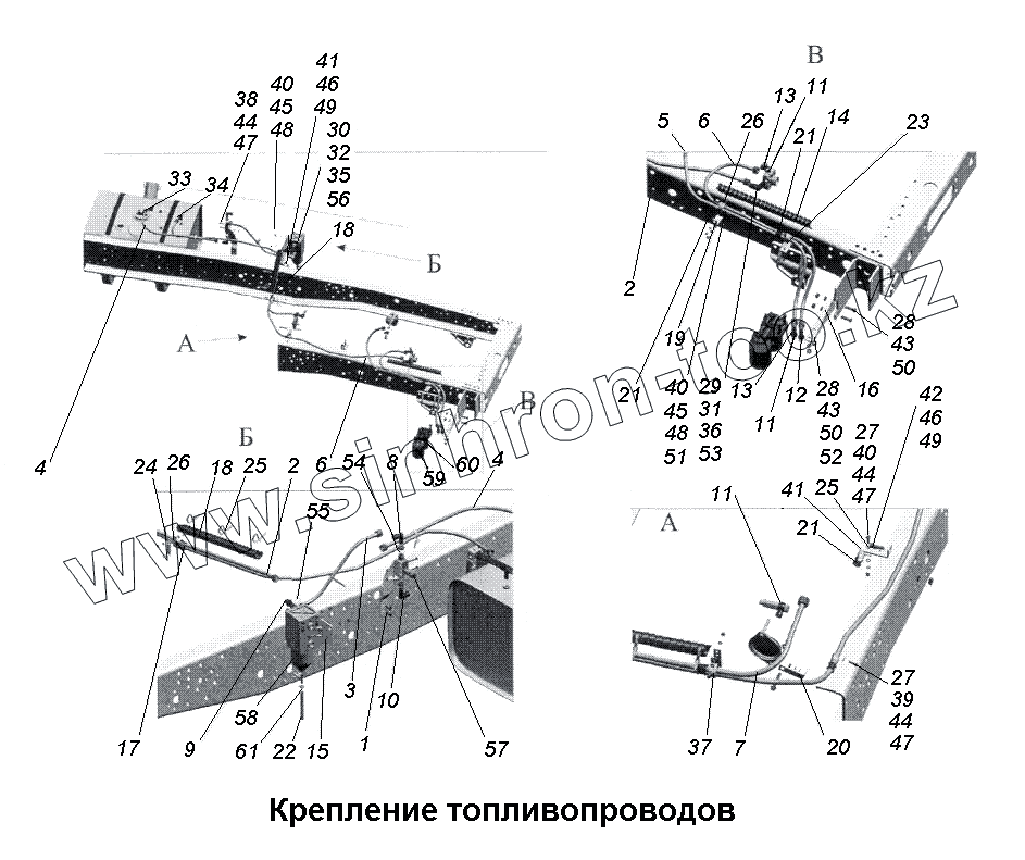 Каталог запасных частей к технике: МАЗ-533731. Крепление топливопроводов