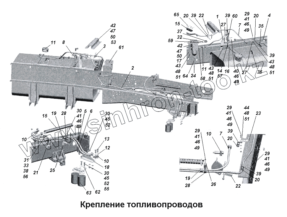 Каталог запасных частей к технике: МАЗ-533731. Крепление топливопроводов