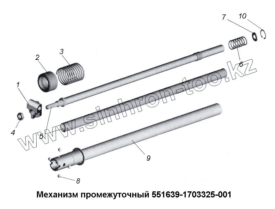 Каталог запасных частей к технике: МАЗ-533731. Механизм промежуточный 551639-1703325-001