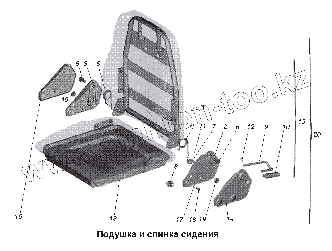Каталог запасных частей к технике: МАЗ-533731. Подушка и спинка сидения