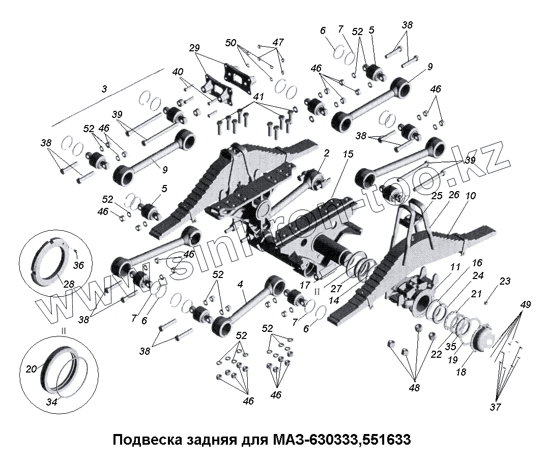 Каталог запасных частей к технике: МАЗ-533731. Подвеска задняя для МАЗ-630333,551633