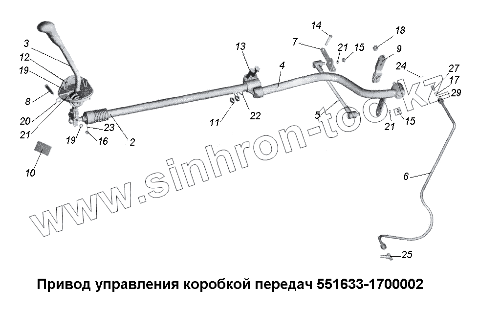 Каталог запасных частей к технике: МАЗ-533731. Привод управления коробкой передач 551633-1700002