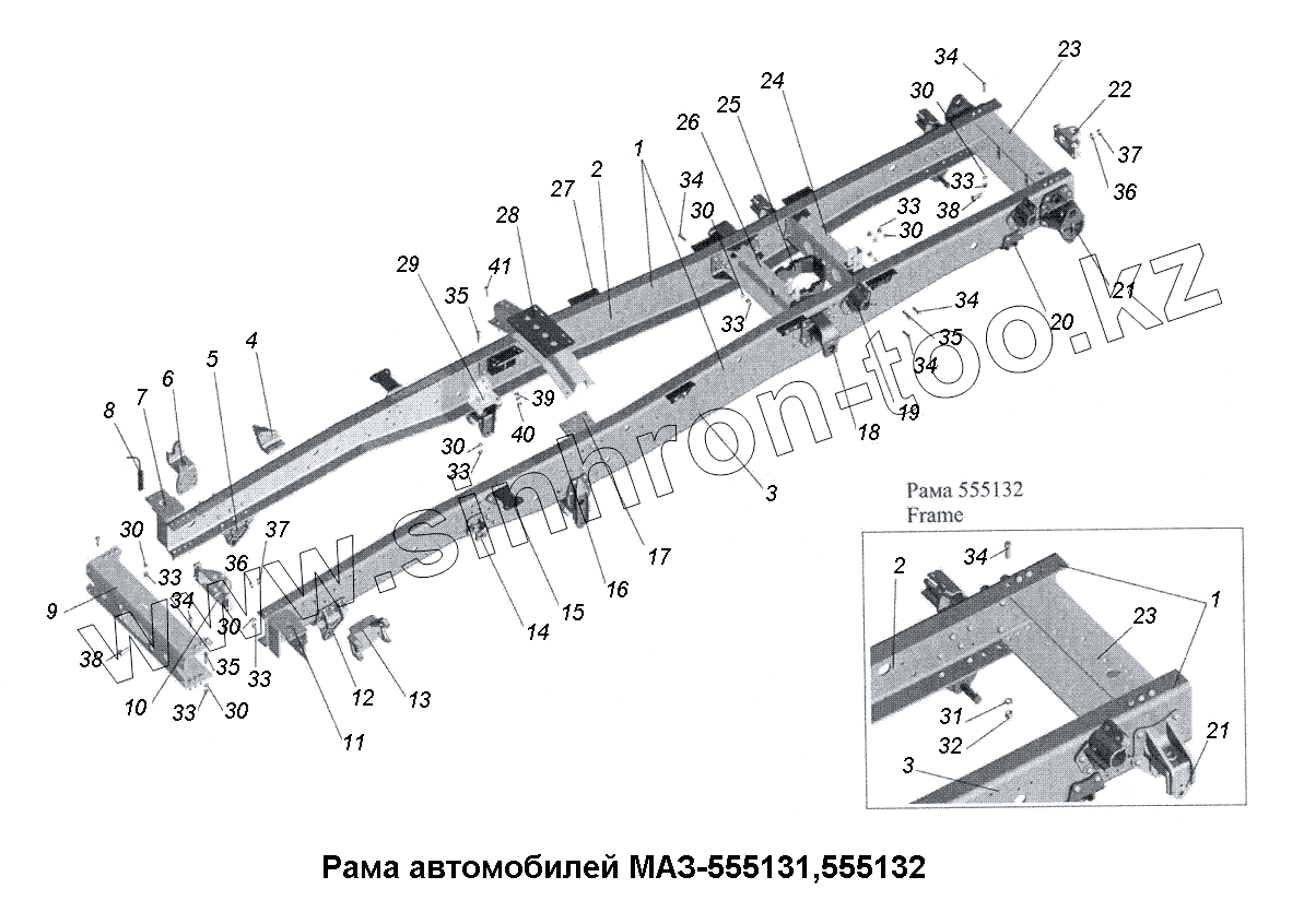 Каталог запасных частей к технике: МАЗ-533731. Рама автомобилей МАЗ-555131, 555132