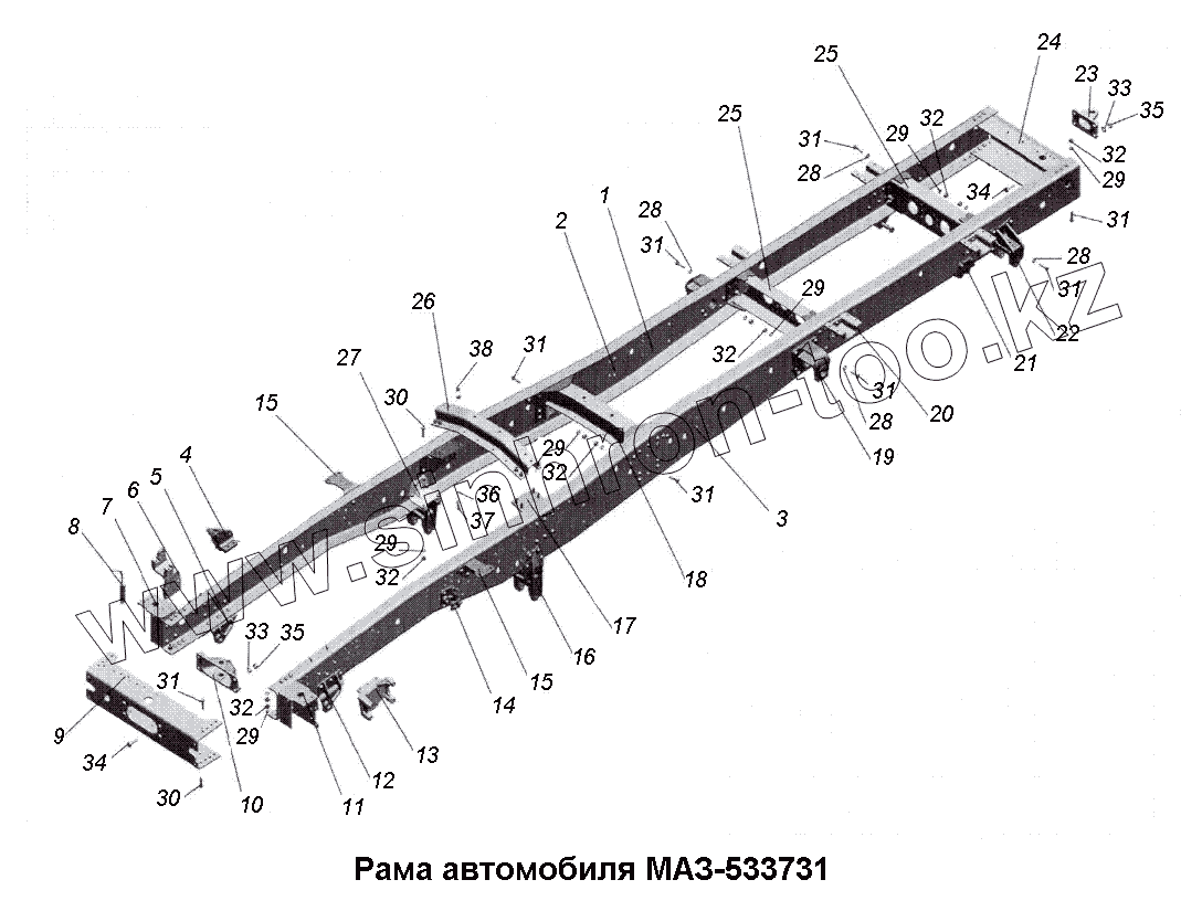 Каталог запасных частей к технике: МАЗ-533731. Рама автомобиля МАЗ-533731