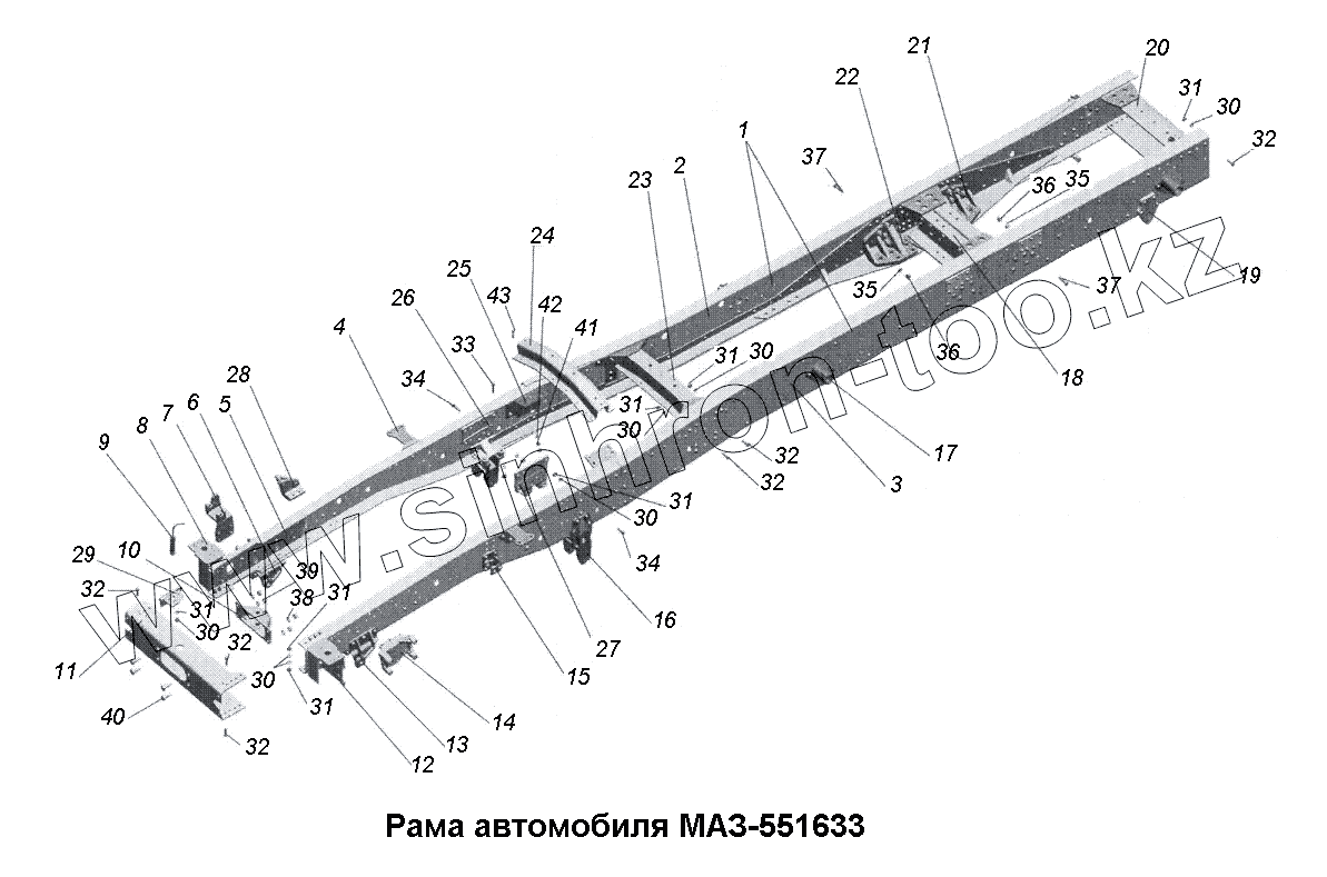 Каталог запасных частей к технике: МАЗ-533731. Рама автомобиля МАЗ-551633