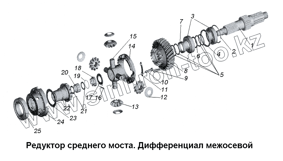 Каталог запасных частей к технике: МАЗ-533731. Редуктор среднего моста. Дифференциал межосевой