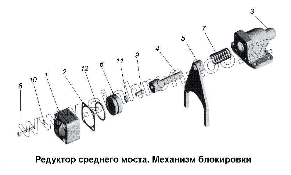 Каталог запасных частей к технике: МАЗ-533731. Редуктор среднего моста. Механизм блокировки