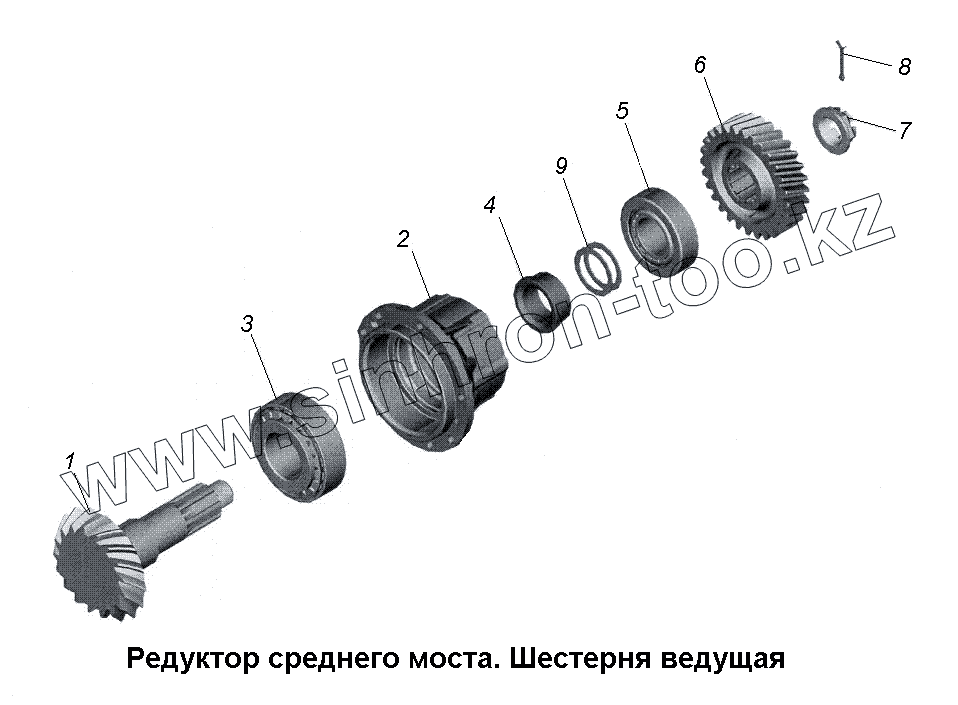 Каталог запасных частей к технике: МАЗ-533731. Редуктор среднего моста. Шестерня ведущая