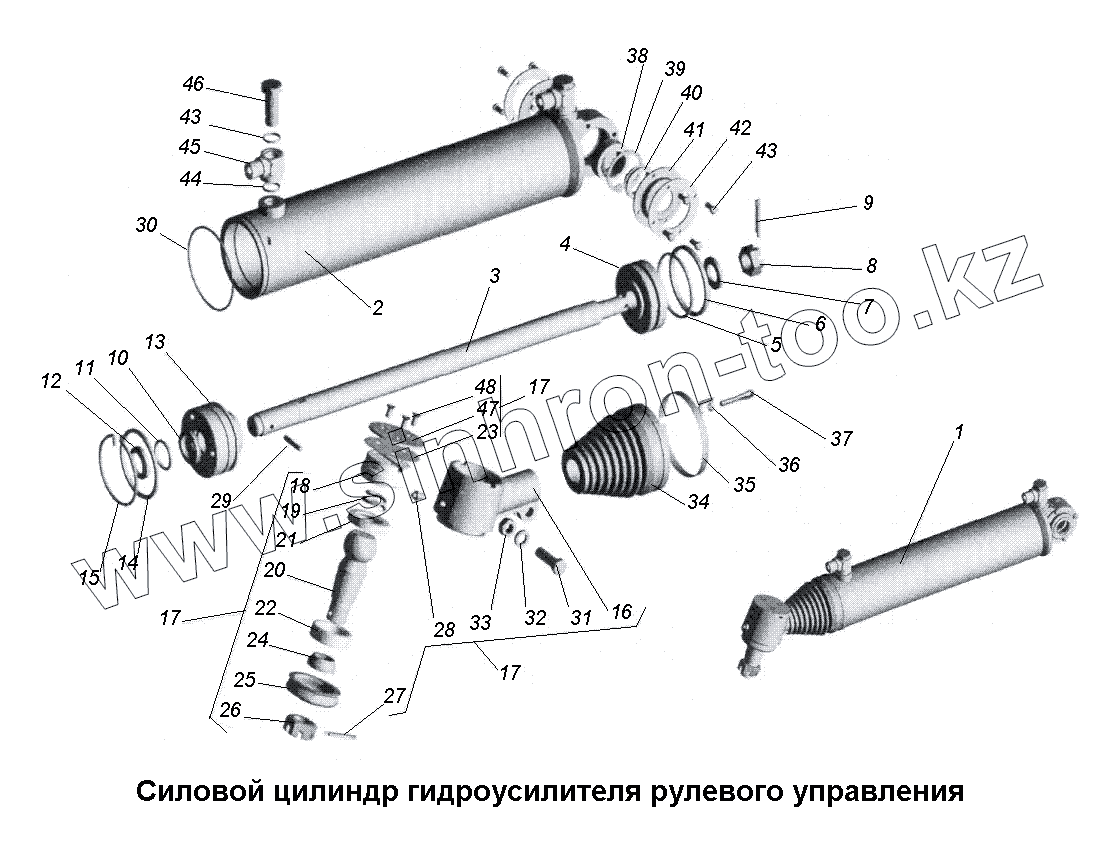 Каталог запасных частей к технике: МАЗ-533731. Силовой цилиндр гидроусилителя рулевого управления