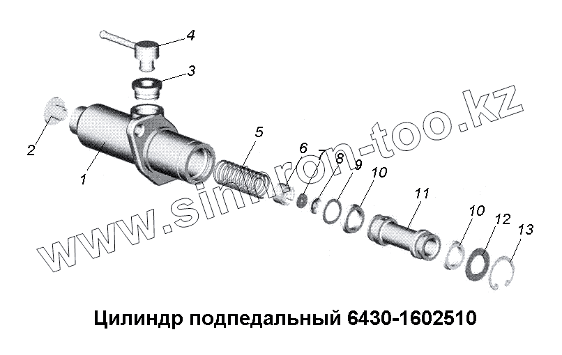 Каталог запасных частей к технике: МАЗ-533731. Цилиндр подпедальный 6430-1602510