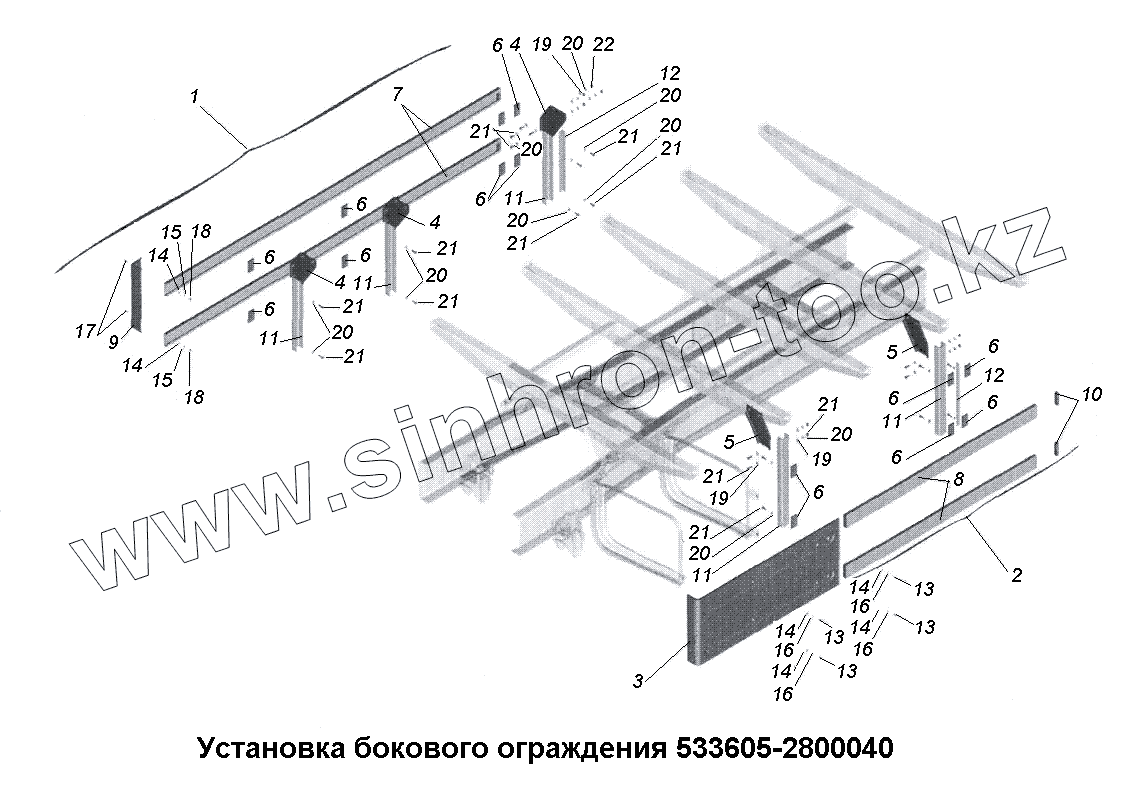Каталог запасных частей к технике: МАЗ-533731. Установка бокового ограждения 533605-2800040