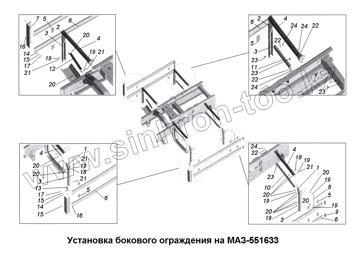 Каталог запасных частей к технике: МАЗ-533731. Установка бокового ограждения на МАЗ-551633