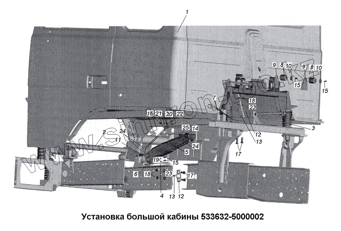 Каталог запасных частей к технике: МАЗ-533731. Установка большой кабины 533632-5000002