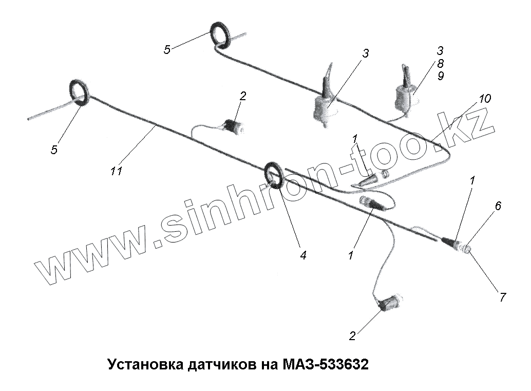 Каталог запасных частей к технике: МАЗ-533731. Установка датчиков на МАЗ-533632