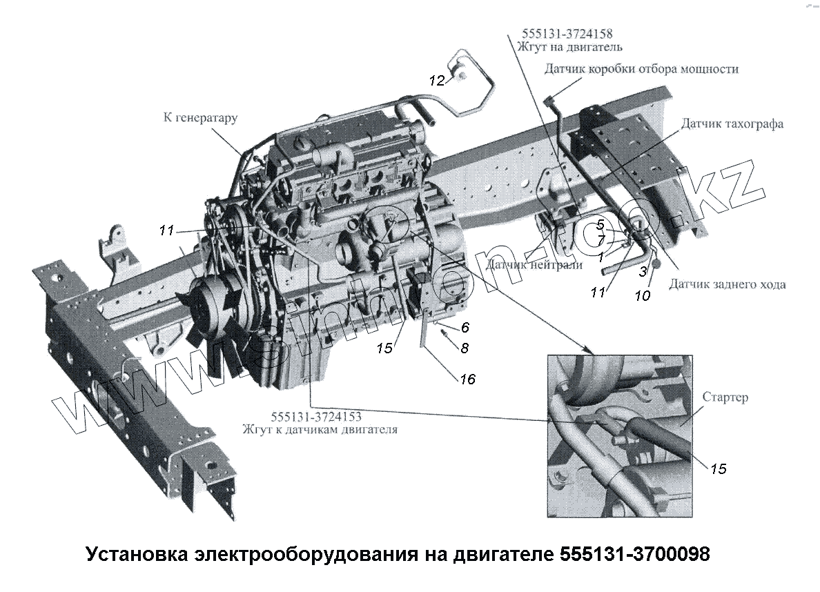 Каталог запасных частей к технике: МАЗ-533731. Установка электрооборудования на двигателе 555131-3700098