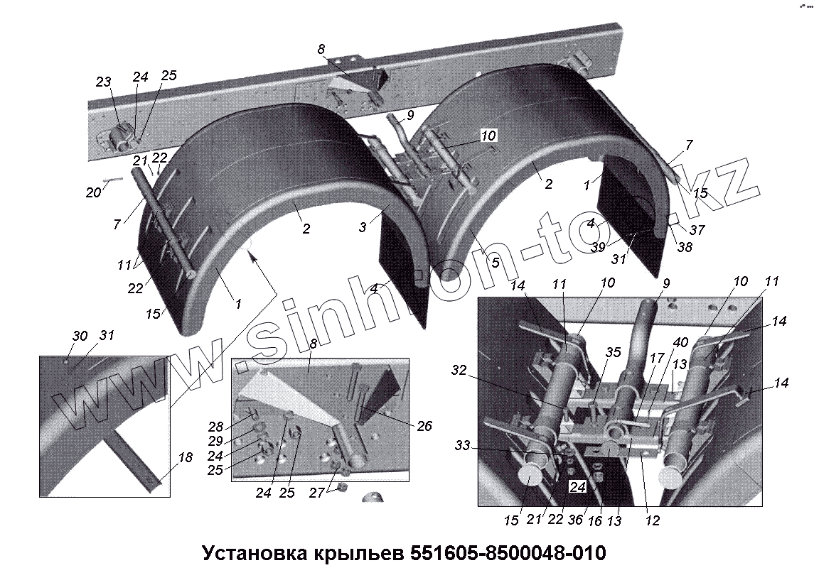 Каталог запасных частей к технике: МАЗ-533731. Установка крыльев 551605-8500048-010
