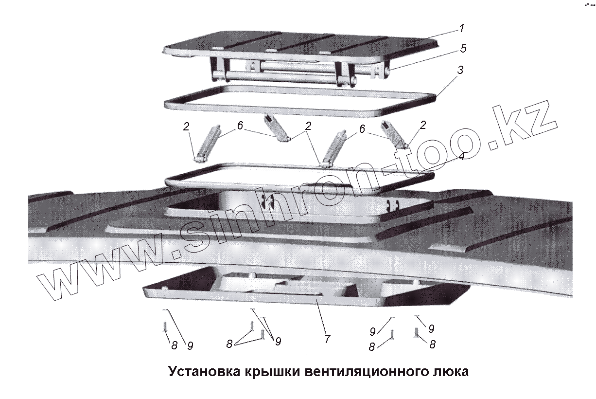 Каталог запасных частей к технике: МАЗ-533731. Установка крышки вентиляционного люка