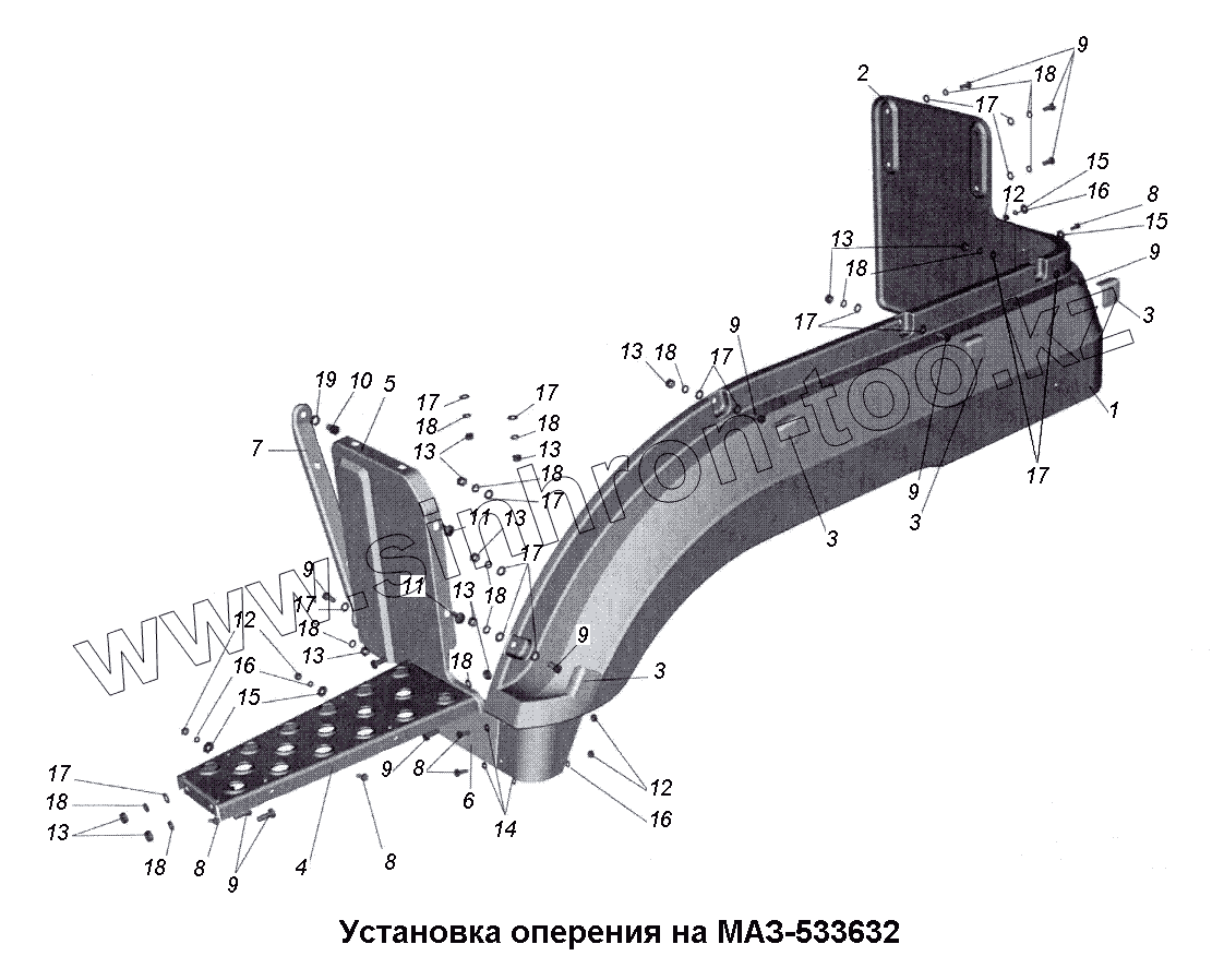 Каталог запасных частей к технике: МАЗ-533731. Установка оперения на МАЗ-533632