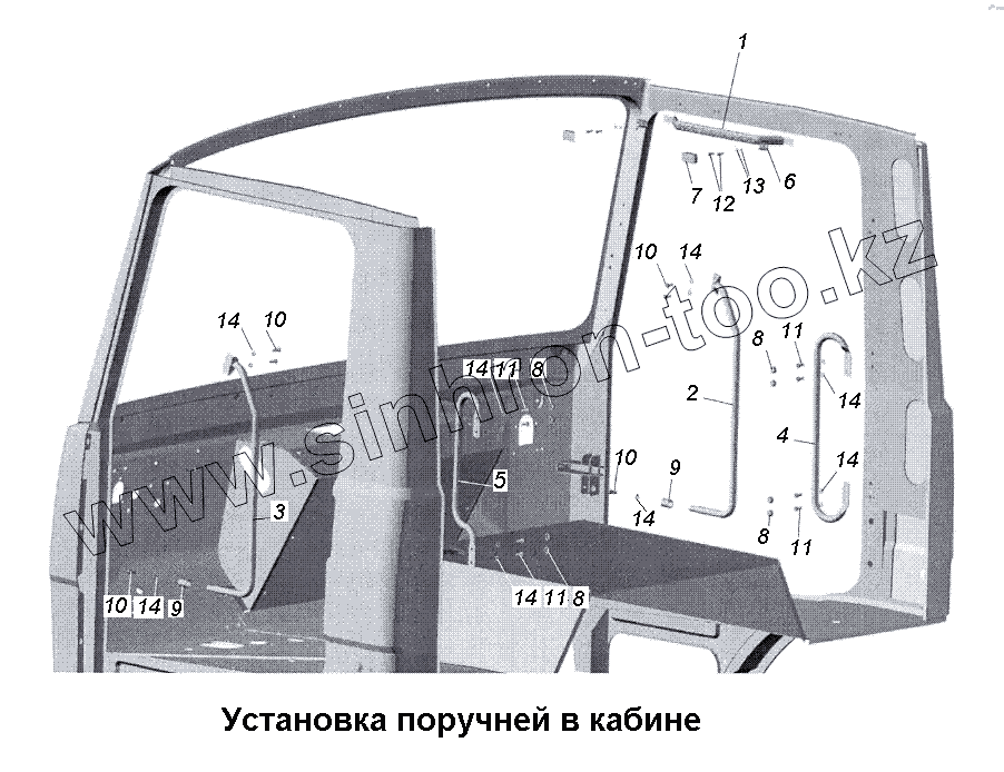 Каталог запасных частей к технике: МАЗ-533731. Установка поручней в кабине
