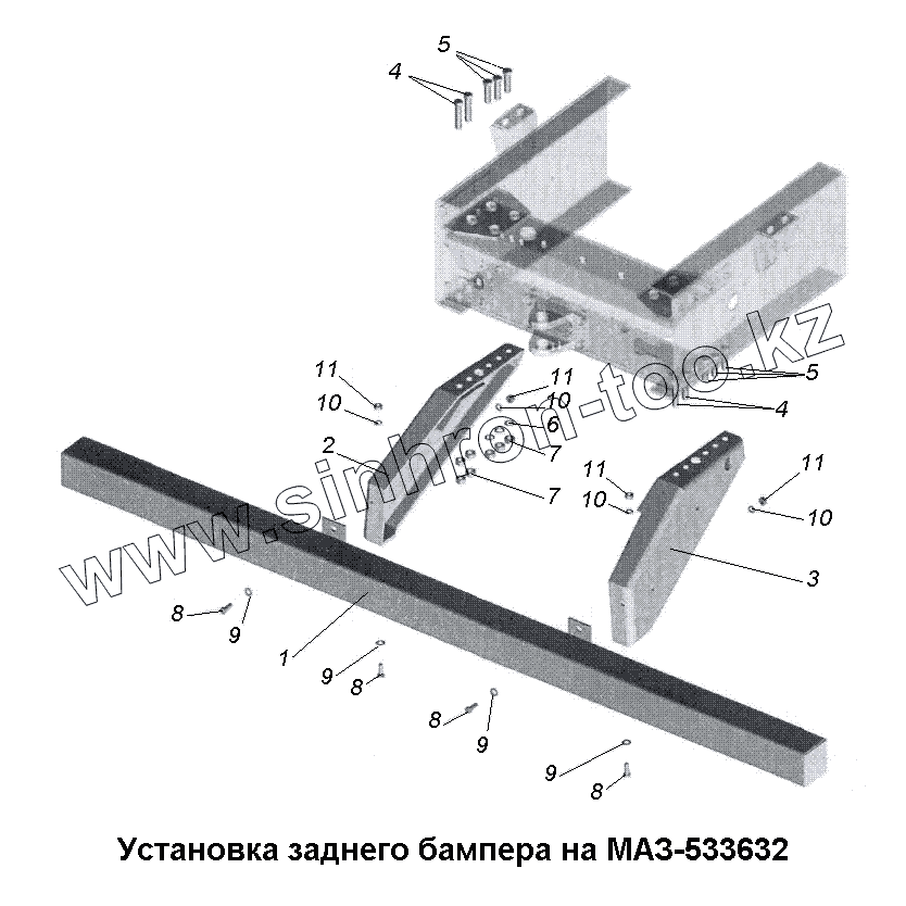 Каталог запасных частей к технике: МАЗ-533731. Установка заднего бампера на МАЗ-533632