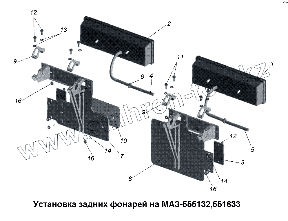 Каталог запасных частей к технике: МАЗ-533731. Установка задних фонарей на МАЗ-555132, 551633