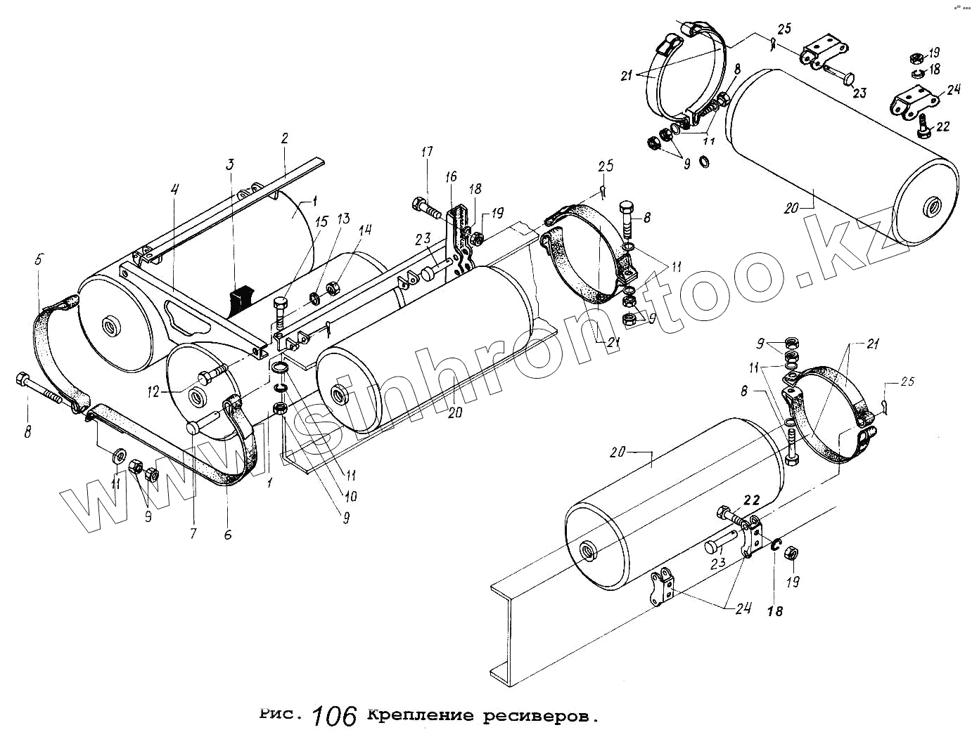 Каталог запасных частей к технике: МАЗ-5337. Крепление ресиверов