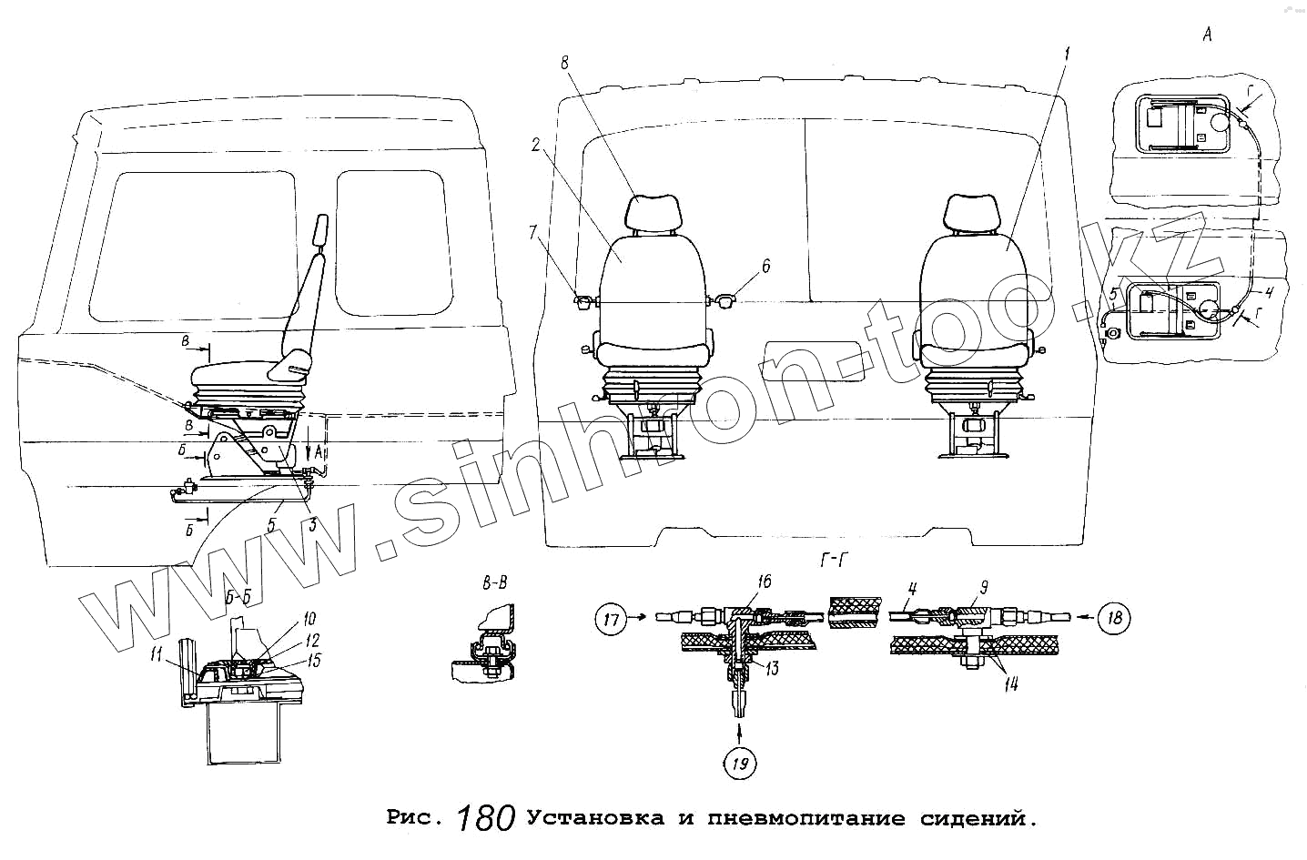 Каталог запасных частей к технике: МАЗ-5337. Установка и пневмопитание сидений
