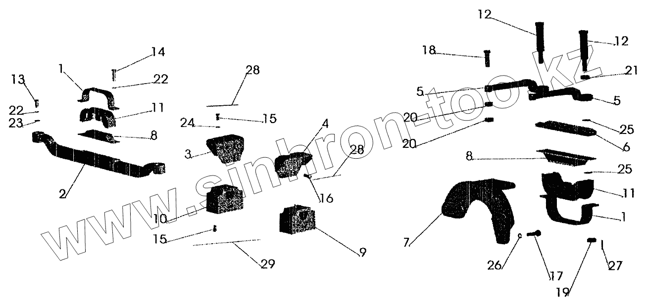 Каталог запасных частей к технике: МАЗ-5337 (2005). Крепление двигателя на автомобиле МАЗ-533702