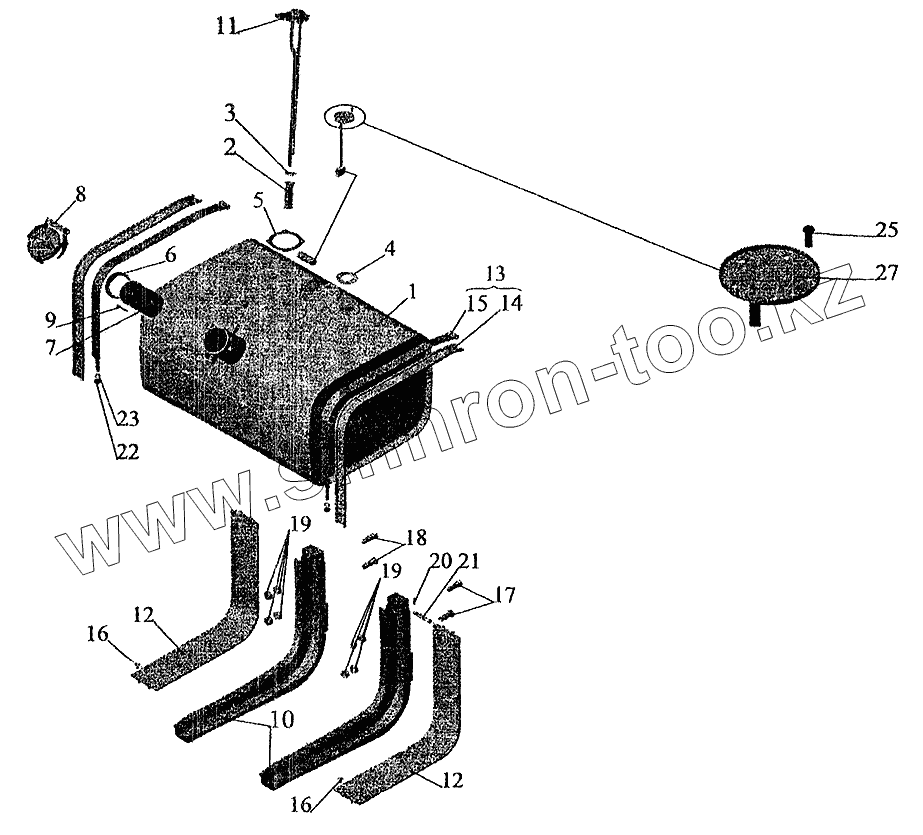 Каталог запасных частей к технике: МАЗ-5337 (2005). Крепление топливного бака (350 литров)