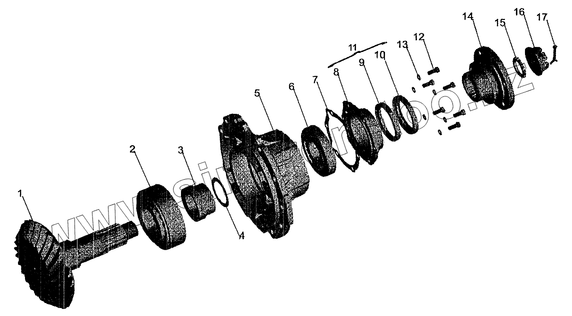 Каталог запасных частей к технике: МАЗ-5337 (2005). Мост задний МАЗ-533608. Шестерня ведущая