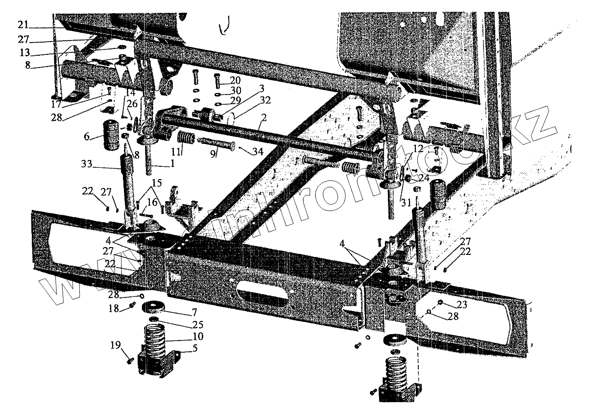 Каталог запасных частей к технике: МАЗ-5337 (2005). Переднее подрессоривание большой кабины