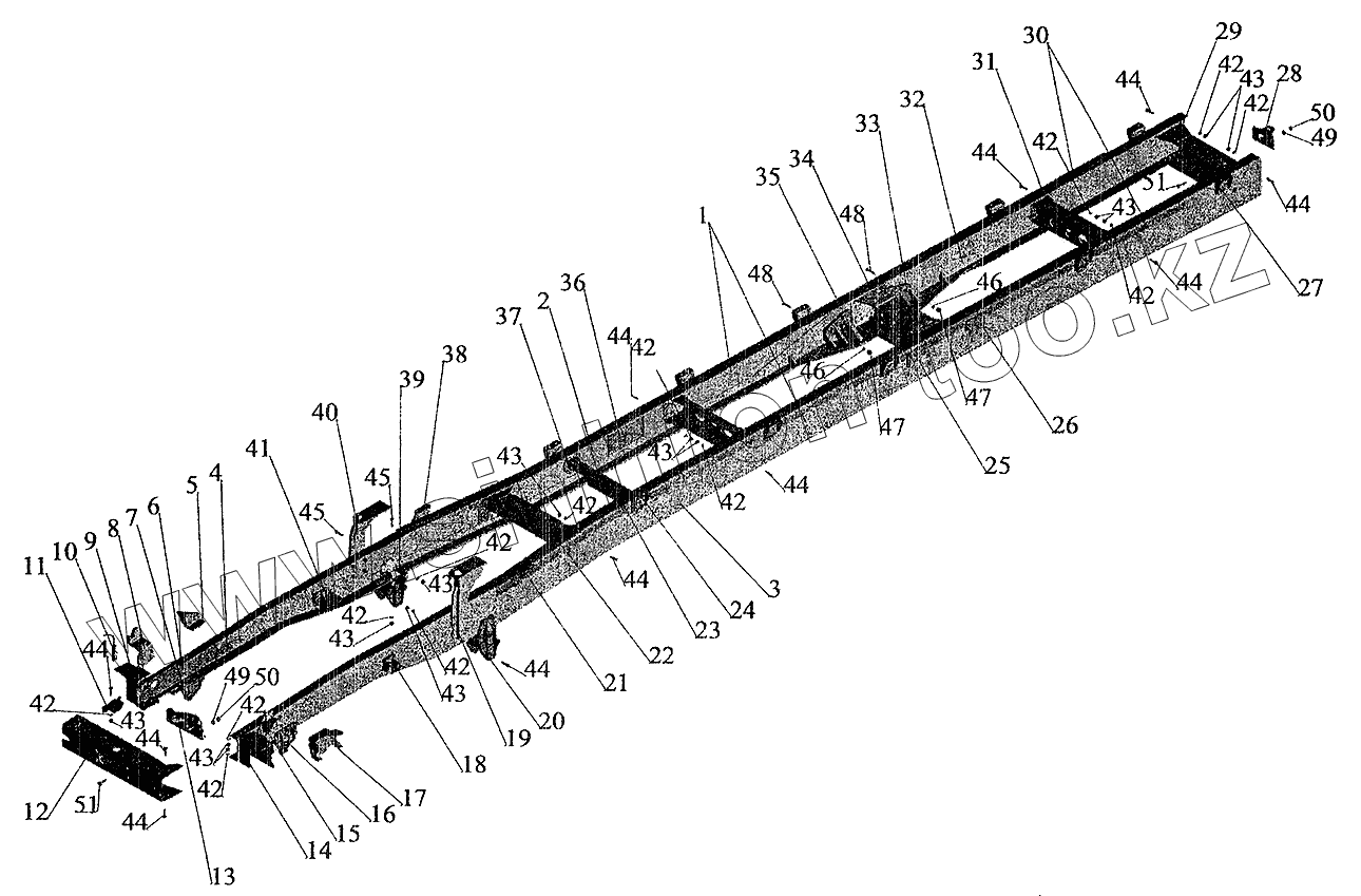 Каталог запасных частей к технике: МАЗ-5337 (2005). Рама автомобилей МАЗ-630308, 630305