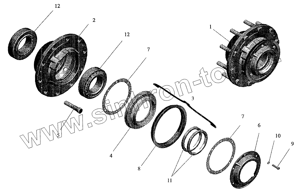 Каталог запасных частей к технике: МАЗ-5337 (2005). Ступица моста